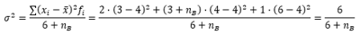 V = [3*(5 - 1,85)² + 4*(7-1,85)² + 21*(3-1,85)² + 28*(2-1,85)² + 23*(1-1,85)²] / 100